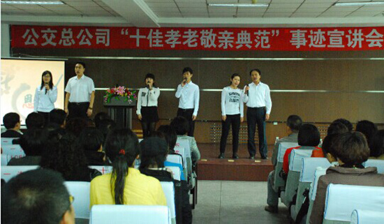 為進(jìn)一步弘揚(yáng)社會主義核心價值觀和中華民族尊老敬老、愛老養(yǎng)老的傳統(tǒng)美德,強(qiáng)化職工的孝老敬親意識,市公交總公司工會于9月初開始在公司全體職工中開展了尋找“公交孝老敬親典范”活動。在近一個月的評選中,通過層層宣傳發(fā)動,職工自薦、基層推薦,逐級審核把關(guān)、總公司評審小組審定等程序,評選出公交總公司“孝老敬親典范” 10名、“優(yōu)秀孝老敬親模范”56名。 29日,總公司工會在十樓會議室召開了“十佳孝老敬親典范”事跡宣講會。會上,8名來自一線調(diào)度員、保潔員、充值員和修理工的“十佳孝老敬親典范”親身講述了自己孝老敬親的感人故事,他們的精彩宣講讓在場的觀眾熱淚盈眶。在宣講中,還進(jìn)行了詩朗誦《感恩父母》、小提琴演奏《時間都去哪了》、歌曲《感恩的心》等文藝表演,將活動推向了高潮。 此次孝老敬親典范事跡宣講活動為推進(jìn)企業(yè)精神文明建設(shè),弘揚(yáng)孝文化、營造崇尚孝道的良好社會風(fēng)尚,讓大家學(xué)習(xí)我們身邊的榜樣,人人爭當(dāng)孝老敬親典范,產(chǎn)生了積極的影響和有力地促進(jìn)作用。 |