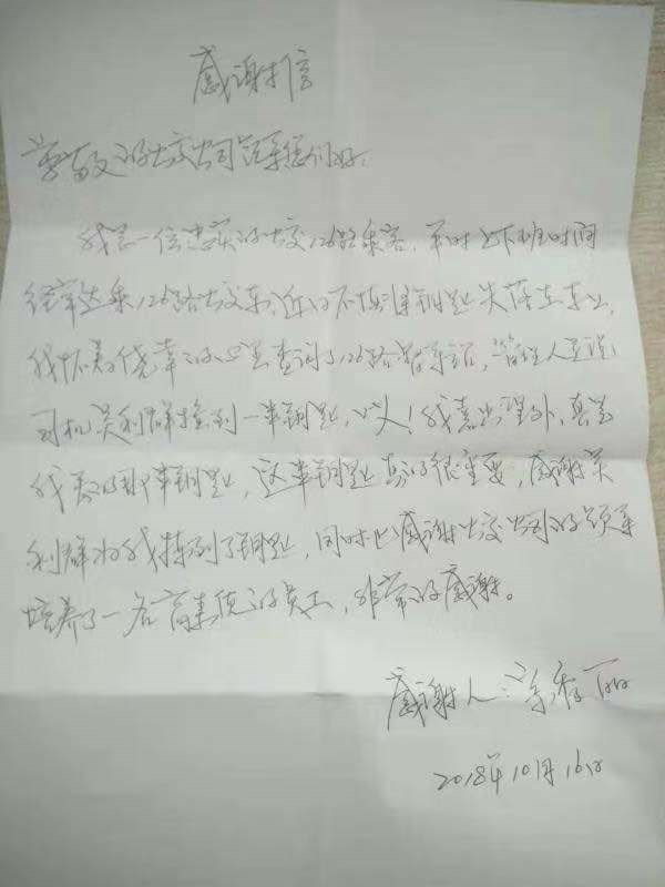 2018年10月16日,一公司三隊(duì)126線駕駛員吳立群在車上撿到一串鑰匙,交給當(dāng)班調(diào)度,事后失主到調(diào)度室尋找,找到了自己的鑰匙,很是感謝,并送來(lái)感謝信一封表達(dá)自己的感激之情。