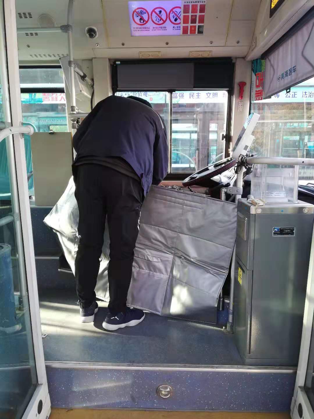 北方的冬天寒風(fēng)刺骨,雖然“南京車”都有暖風(fēng)和鍋爐,乘客們感到車廂溫暖,由于車輛沒有設(shè)計(jì)為駕駛員擋風(fēng)的圍擋,駕駛員因?yàn)榘ぶ伴T,車在運(yùn)營時上一站的寒氣還沒有散去,就又要開門上下客了,很多駕駛員為了擋風(fēng)保暖,開車時將小被子蓋在腿上,有的利用車上監(jiān)控設(shè)備的USB口私接電熱坐墊等,這樣給駕駛操作帶來不便,給行車安全帶來了很大安全隱患,也容易損壞車載設(shè)備。