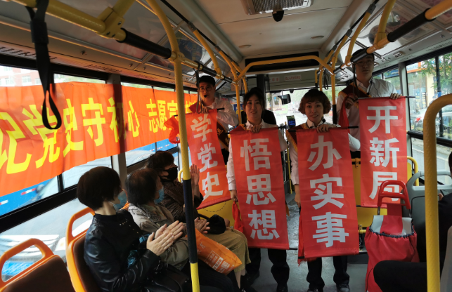 為充分發(fā)揮公交車流動(dòng)性強(qiáng)、宣傳面廣的優(yōu)勢(shì),交運(yùn)集團(tuán)的車廂文藝演出將繼續(xù)走進(jìn)各條公交線路,并在部分公交車廂懸掛國(guó)旗、黨旗,張貼黨史故事,做到學(xué)史明理、學(xué)史增信、學(xué)史崇德、學(xué)史力行,以昂揚(yáng)姿態(tài)奮力開(kāi)啟全面建設(shè)社會(huì)主義現(xiàn)代化國(guó)家新征程,以優(yōu)異成績(jī)迎接建黨一百周年。